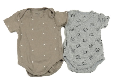 2x body - šedé s šelmami + hnědé puntíkaté 50/56