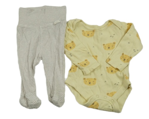 2set- žluté body s tygry+ pruhované polodupky