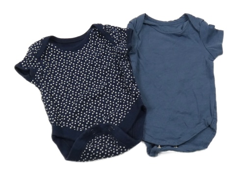 2x body - tmavomodré puntíkaté + modrošedé s nápisem