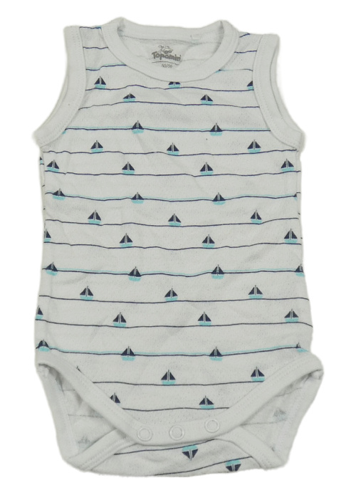 Bílo-tmavomodré pruhované tílkové body s loďkami Topomini