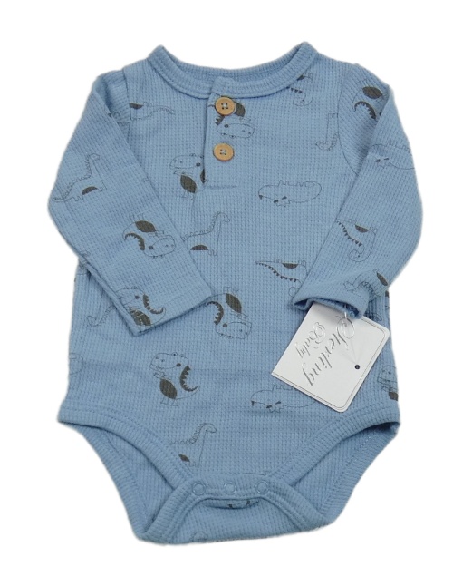 Nové - Modré žebrované body s dinosaury a knoflíky