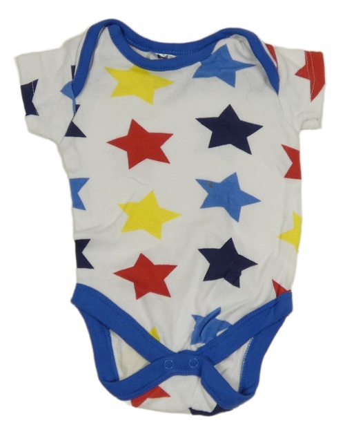 Bílé body s hvězdami a modrým lemem