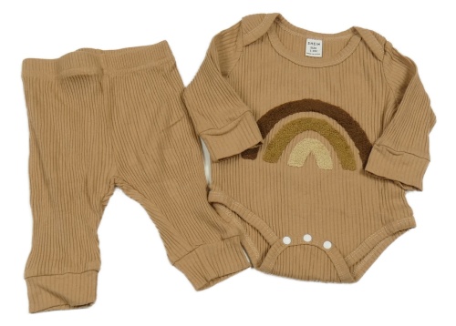 2set - Hnědé žebrované body s duhou + lehké tepláky Shein