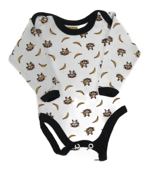 Bílé body s černým lemem a opičkami