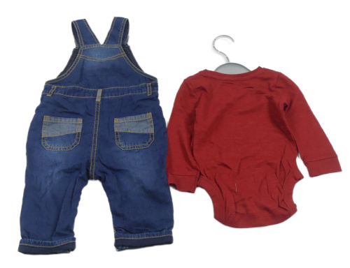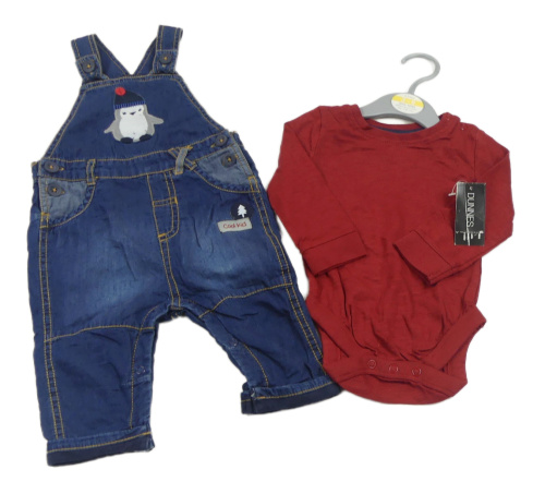 • Nové - 2Set - Tmavomodré riflové laclové podšité kalhoty s tučňáčkem + vínové melírované body St. Bernard