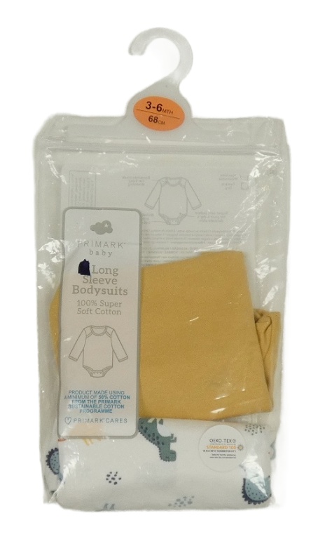 Nové - 2x - Body - Okrové, bílé s dinosaury PRIMARK