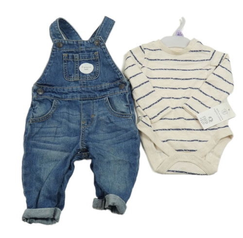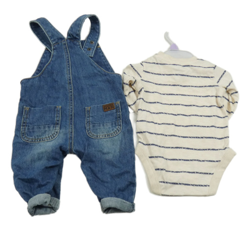 • Nové - 2set - Smetanovo-tmavomodré pruhované body + modré laclové rifle F&F