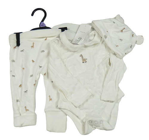 Nové - 3set - Smetanové žebrované body s žirafou a límečkem + lehké tepláky + bavlněná čepice F&F