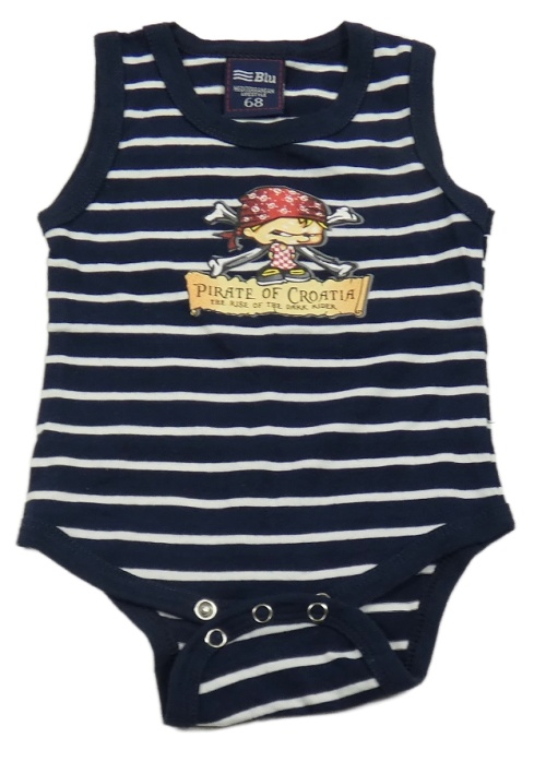 Tmavomodro-bílé pruhované body s pirátem