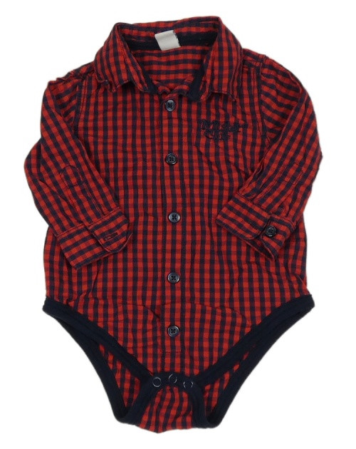 Červeno-tmavomodré kostkované košilové body s nápisy dopodopo