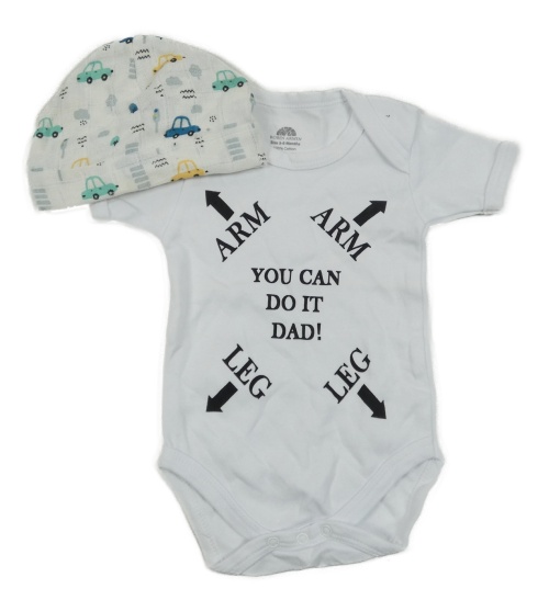 2set - Bílé body s nápisem + smetanová čepice s auty