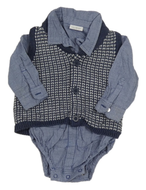 • 2set - Modro-bílé kostkované košilové body + tmavomodro-šedá vzorovaná propínací svetrová vesta Next