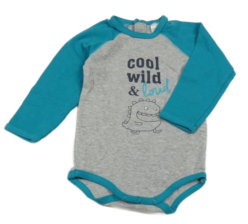 Šedo-tyrkysové body s nápisem a dinem