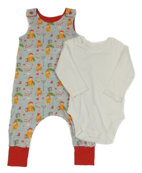 • 2set - Bílé body + světlemodro-červené laclové tepláky s obrázky
