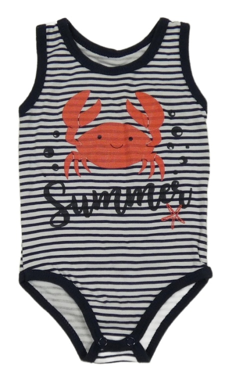 Bílo-tmavomodré pruhované body s krabem