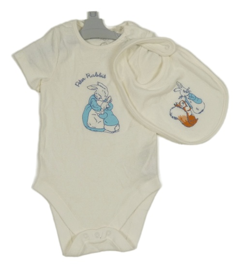 • Nové - 2set - Smetanové vzorované body + bryndák s králíkem Petrem M&S