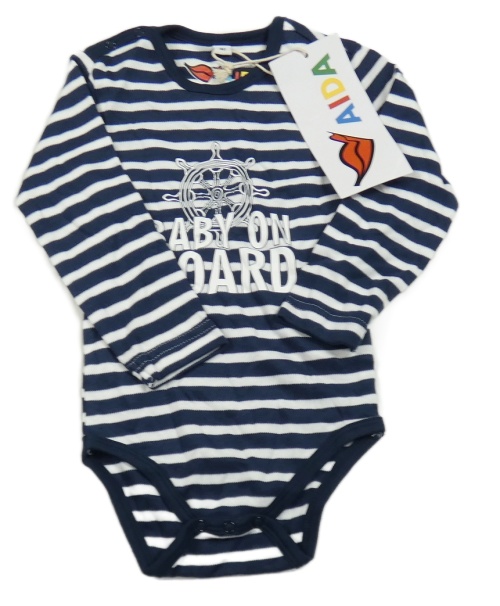 Nové - Tmavomodro-bílé pruhované body s nápisem