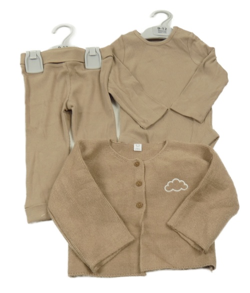 • Nové - 3set - Hnědé žebrované body + tepláky + hnědý propínací svetr s mráčkem M&S