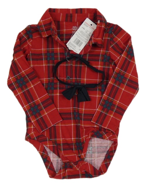 Nové - 2set - Červeno-tmavomodré kostkované košilové body + připínací motýlek F&F