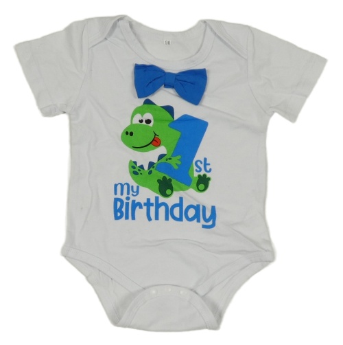 Bílé narozeninové body s číslem a dinosaurem a motýlkem