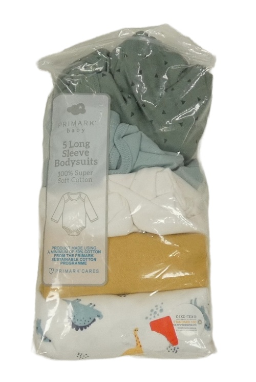 • Nové - 5x bílo-zeleno-okrové body s dinosaury a dlouhým rukávem Primark