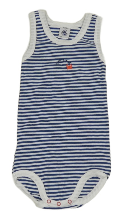 Tmavomodro-bílé pruhované tílkové body s krabem PETIT BATEAU