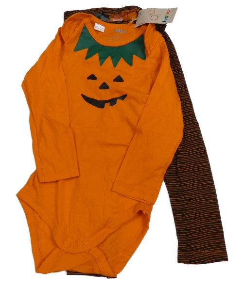 Nové - 2set - Oranžové body s dýní + pruhované tepláky Lupilu