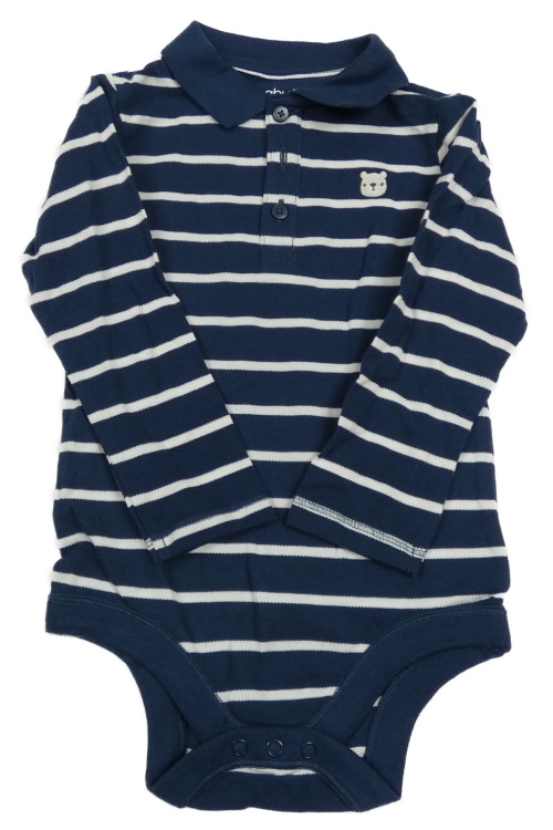 Tmavomodro-bílé pruhované body s medvídkem a límečkem Tu