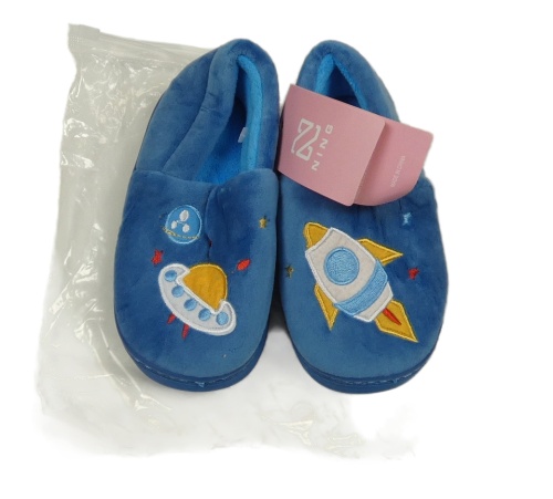 Nové - Modré chlupaté domácí bačkory s raketou a UFO vel. 26/27