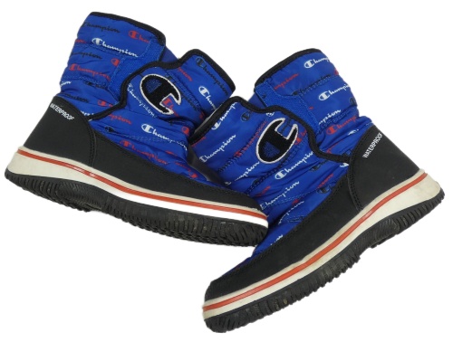 Tmavomdoro-černé šusťákovo/koženkové sněhule Champion vel. 29,5