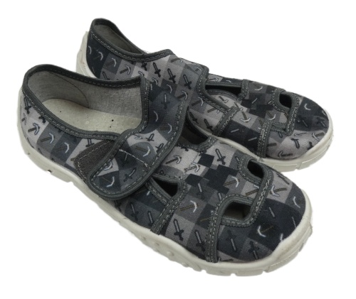Šedo-černé vzorované plátěné bačkory vel. 32