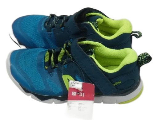 • Nové - tmavopetrolejovo-modrozeleno-limetkové textilní funkční botasky Decathlon vel. 31