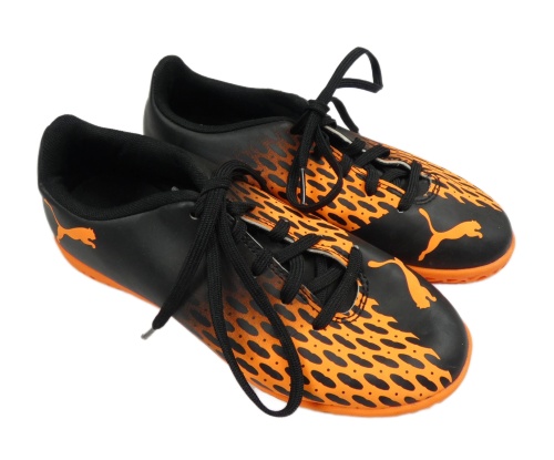 • Černo-neonově oranžové vzorované koženkové sálovky s logem PUMA vel. 33