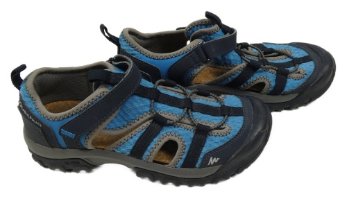 • Tmavomodro-tyrkysové koženkovo/neoprenové funkční sandály Decathlon vel. 34