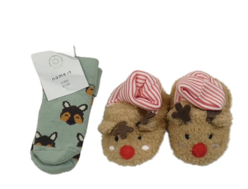 Nové - 2Set - Béžové huňaté bačkory - sob St. Bernard + olivovošedé teplé ponožky s pejsky name it.