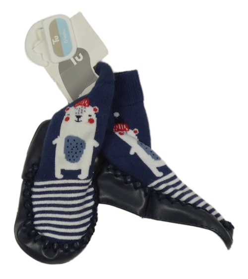 Nové - tmavomodré koženkovo/semišové capáčky s ponožkou s medvídkem Tu vel. 17