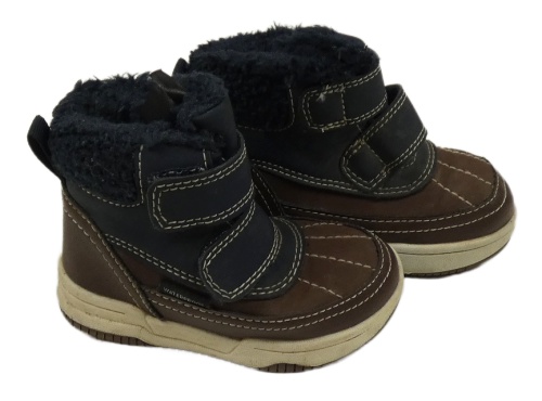 Hnědo-tmavomodré koženkové zateplené boty vel. 21