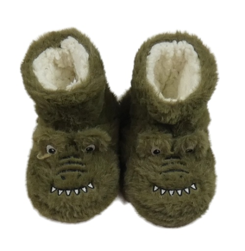Khaki chlupaté zateplené bačkory s dinem vel. 24