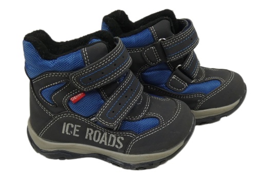• Tmavošedo-modré koženkovoo/textilní kotníčkové zimní boty s logem ICE ROADS vel. 24