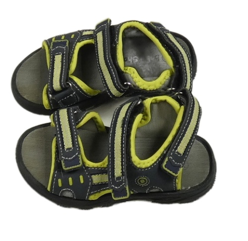• Tmavomodrošedo-limetkové koženkovo/textilní outdoorvé sandály Bobbit Shoes vel. 24