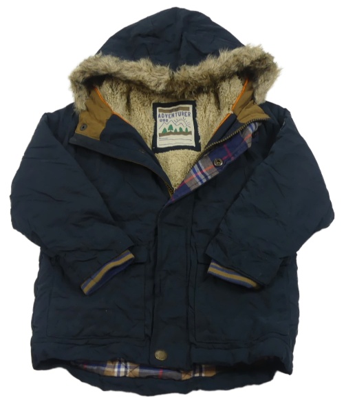 Tmavomodrá šusťáková zimní bunda s kapucí Next