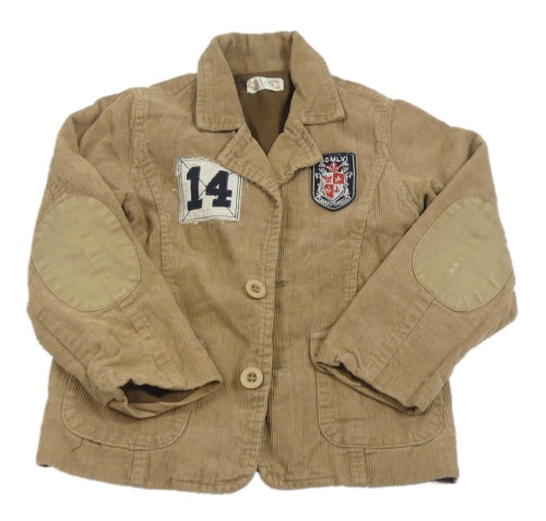 Hnědý manšestrový podšitý kabátek s nášivkami