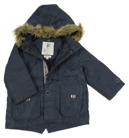 Tmavomodrá šusťáková zateplená parka s kapucí s kožešinou DU PareiL