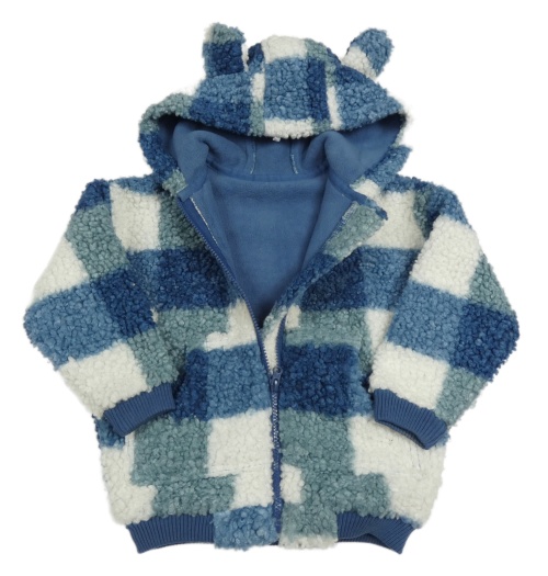 Modro-bílá kostkovaná huňatá podšitá bunda s kapucí George