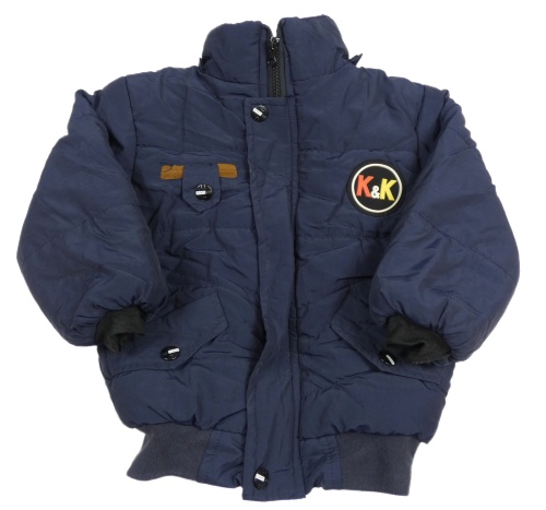 Tmavomodrá šusťáková zimní bunda s nášivkou