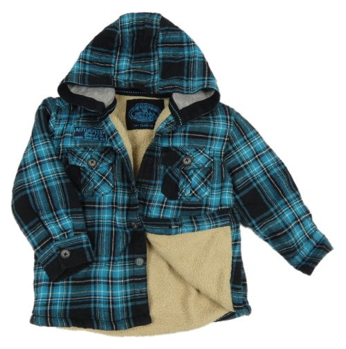 Černo-tyrkysová flanelová zateplená košilová bunda s kapucí Rebel