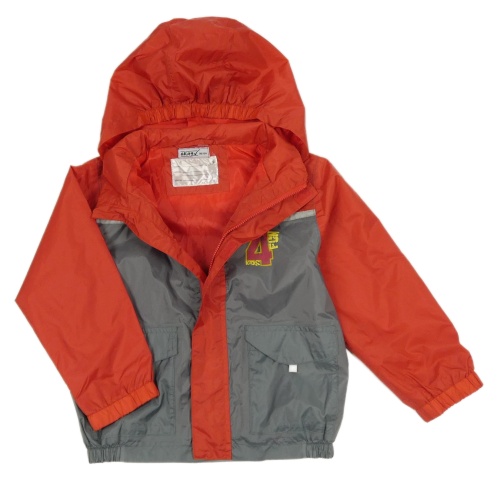 Červeno-šedá šusťáková podzimní bunda s číslem a kapucí Okay