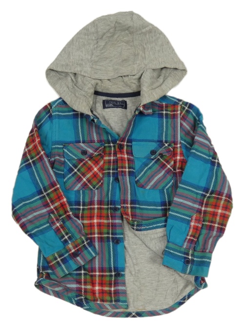 Azurovo-kostkovaná podšitá košilová bunda s kapucí Next