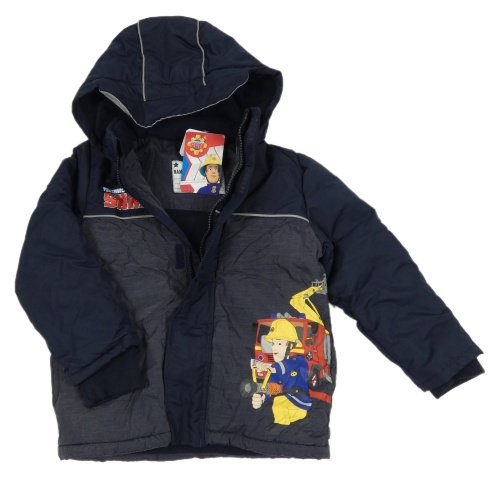 Nové- Tmavomodrá šusťáková zimní bunda s Hasičem Samem a kapucí