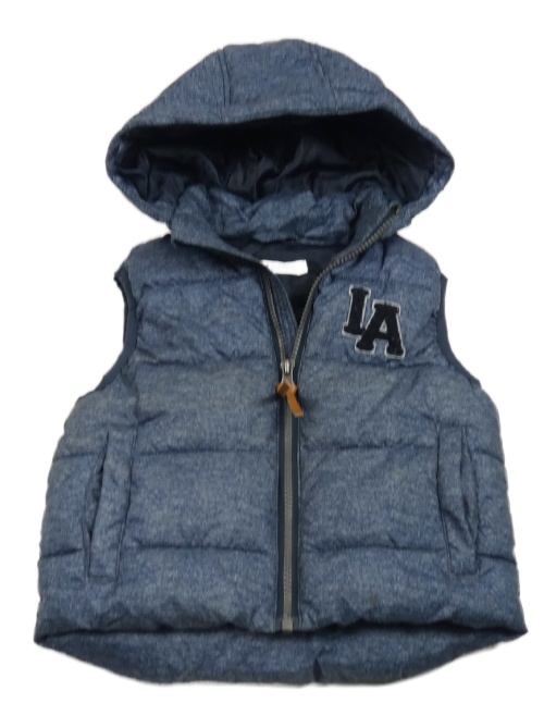 Tmavomodrá melírovaná zateplená šusťáková vesta s nápisem a kapucí H&M